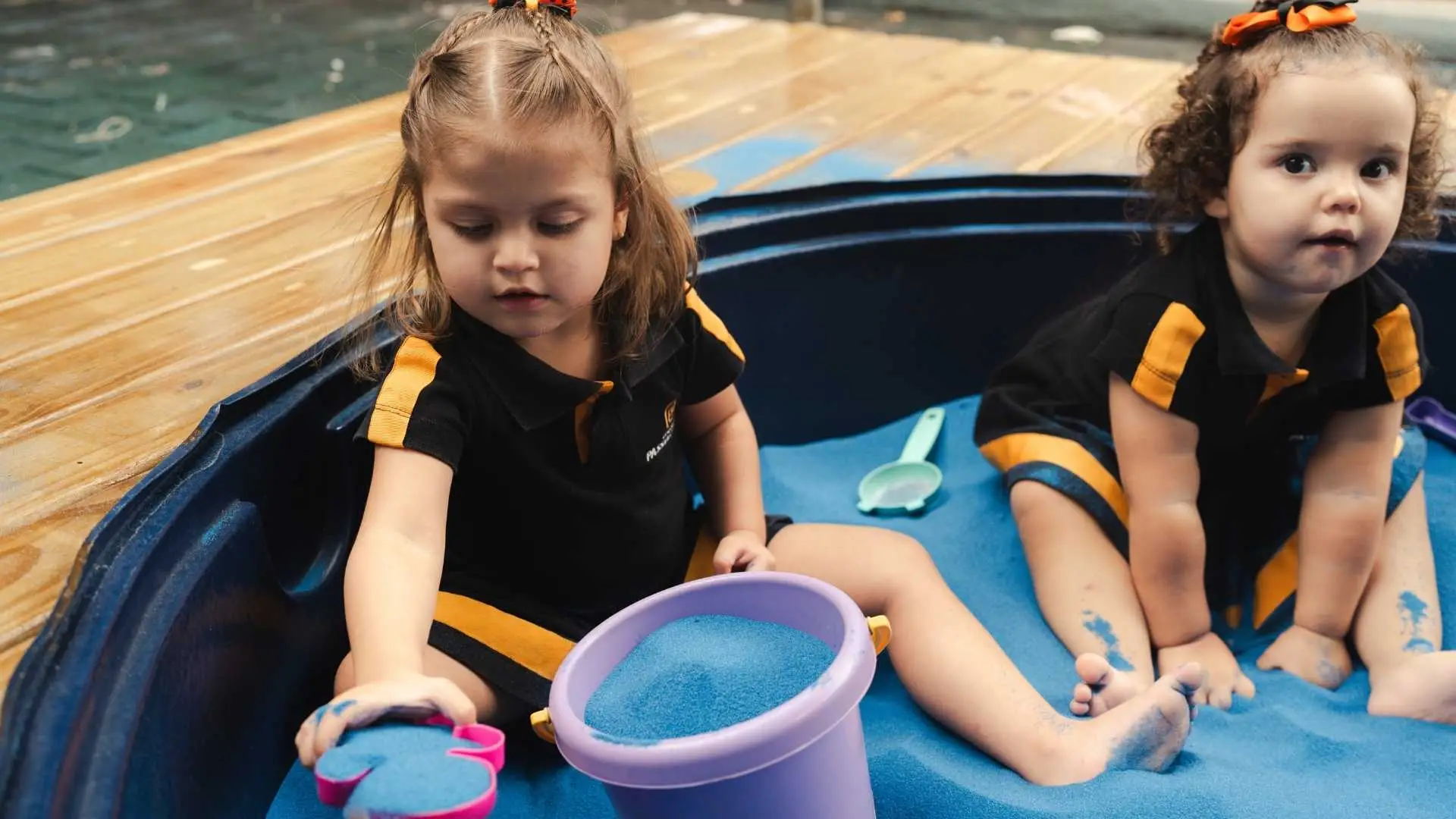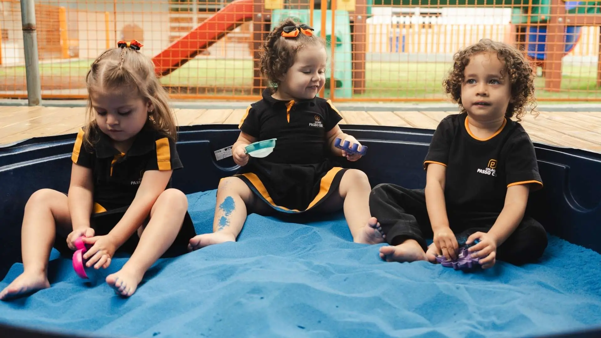 A Areia Azul é uma extensão da sala de aula, a qual amplia as possibilidades de trabalho em grupos, permitindo que os estudantes realizem projetos e ações integradas, assim como momentos lúdicos com os colegas. É uma vivência especial que propõe novas explorações e uma brincadeira integral com todo o corpo.