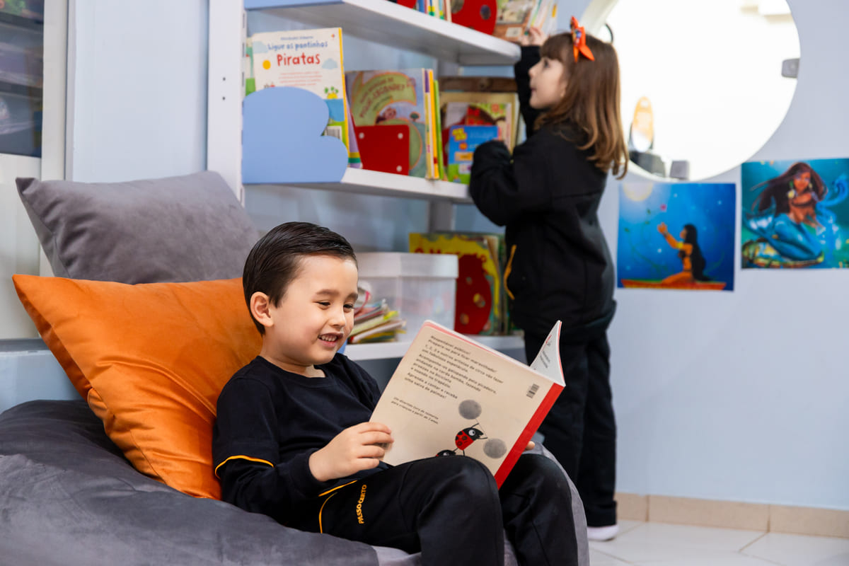 Destinada aos estudantes da Educação Infantil, nossa Biblioteca é um espaço acolhedor que permite o contato com diferentes linguagens artísticas, contação de histórias, projetos de leitura e estudos em grupo. Possuímos um acervo com 447 títulos e 447 volumes de obras literárias brasileiras e estrangeiras, disponíveis para o uso de pais e estudantes.